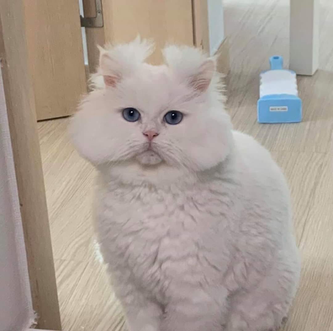 Кот от страха распушился ,